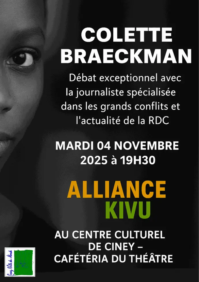 Alliance Kivu vous invite, le mardi 04 novembre 2025, à un débat exceptionnel avec Colette Braeckman, la journaliste belge et grand reporter au service international du Soir. Cette soirée sera l'opportunité de discuter ensemble de la situation à l'est de la République Démocratique du Congo à travers l'expertise et les récits d'une spécialiste de la région des grands lacs.